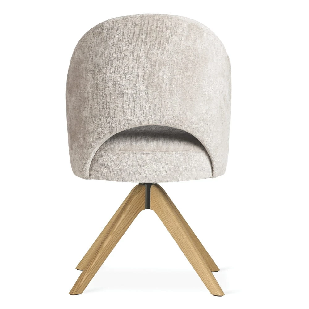 The chair features an upholstered seat with a pocket spring system, offering extraordinary support and comfort even during prolonged sitting sessions. The 360-degree swivel base crafted from a combination of wood and metal ensures effortless rotation, enhancing its versatility and making it an excellent choice for various settings.