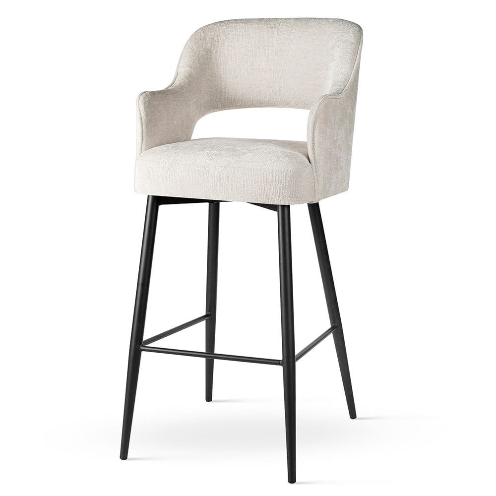 The Keyko bar stool giving you modern, industrial feel, while integrated armrests provide additional comfort. The upholstery is customizable – available in a variety of fabrics and colors. This piece of furniture will work well in both home interiors and in restaurants, hotels, and offices.