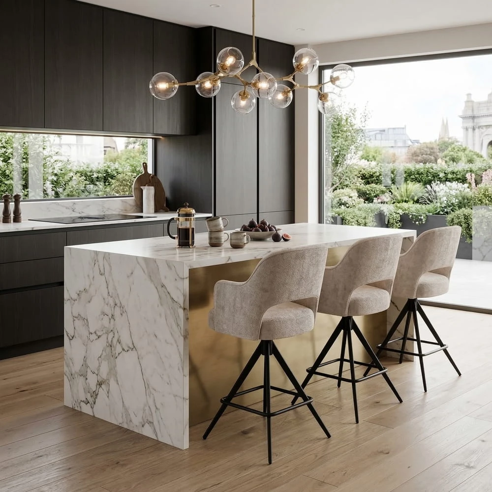 The KEYKO Supreme – bar stool in three variants to select, combines Italian design with English craftsmanship. Ideal for kitchen islands and dining tables, it offers complete comfort thanks to its upholstered seat with spring straps and foam padding.