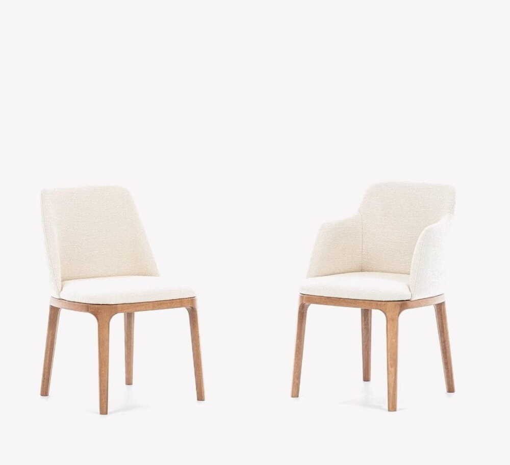 The Luggio chair features elegant beech legs and a seat and backrest upholstered in high-quality fabric- Angola boucle , ensuring that it not only looks stunning but also offers the utmost in seating comfort. You can also check another fabric from our textile gallery and select another one.