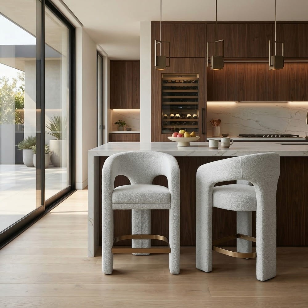 The MACAO upholstered bar stool is the epitome of comfort and refined design, making it the perfect choice for those with a taste for modern interiors. Its subtle lines and impeccable finish are bound to impress, whether placed on a kitchen island, in a dining room, or in a stylish home bar.