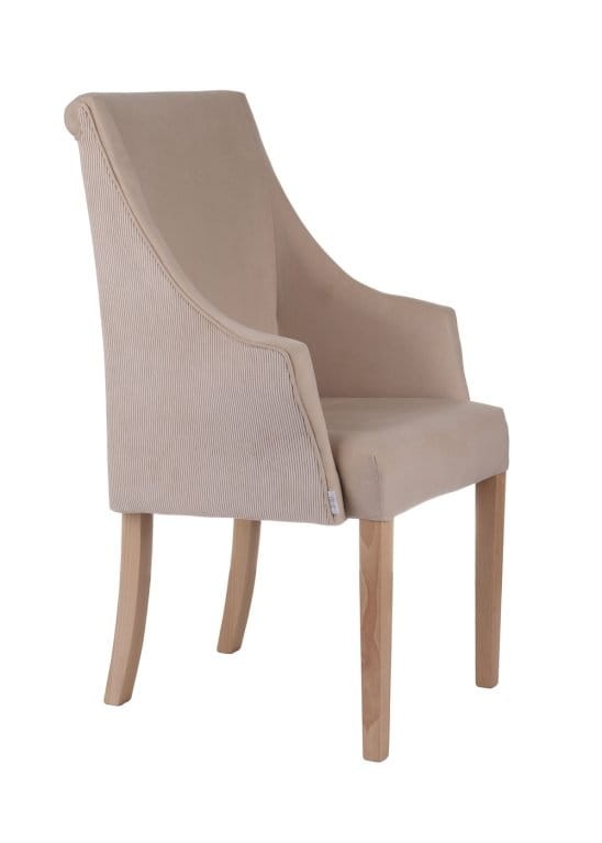 The chair is fully upholstered in a selected upholstery fabric, with the possibility of using two different colours, as well as adding a stylish trim and contrasting colouring.