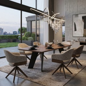 Introducing the VENUS Swivel Chair, a perfect blend of style and functionality designed to elevate your living space. This exquisite chair combines the luxurious comfort of an upholstered seat with a distinctive structural design, making it an ideal choice for those seeking both elegance and practicality.