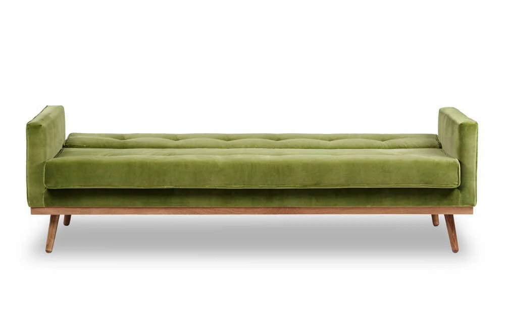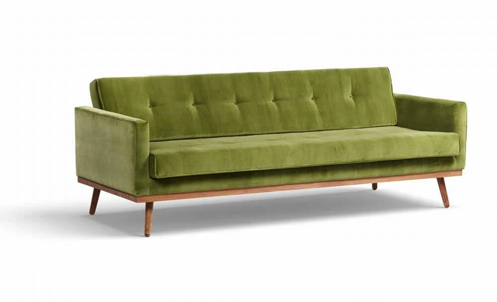 With rounded legs, this sofa is not recommended for use on wooden floors without proper protection, especially on spruce or pine surfaces. The built-in springs enhance both sitting and sleeping comfort. Customers have the option to request flat-cut legs by leaving a note at purchase. Additionally, the removable cushions add to the sofa's practicality, allowing for easy cleaning and maintenance.